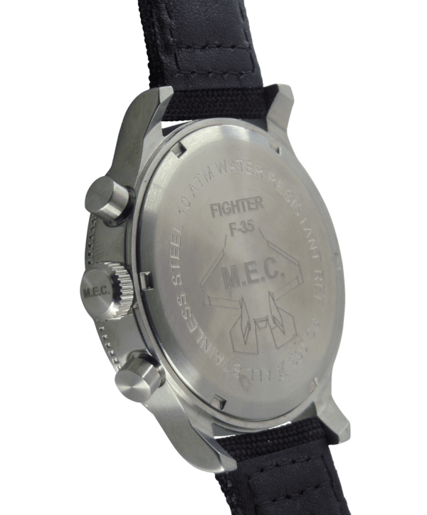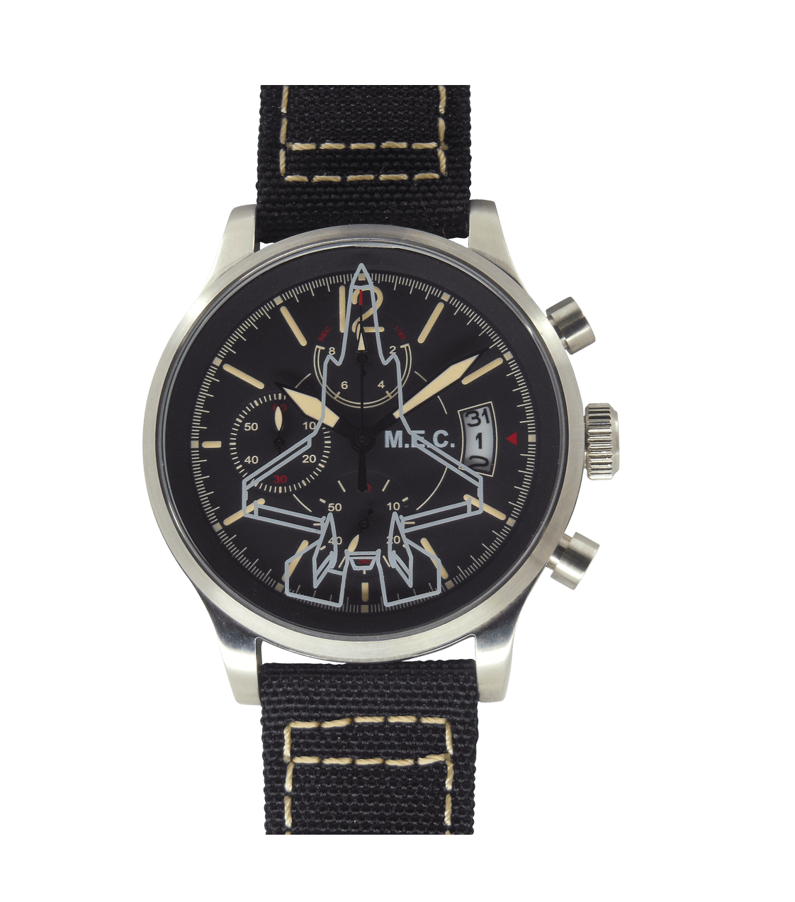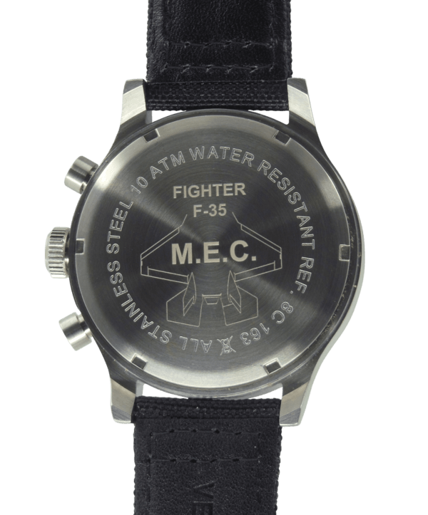 La collezione M.E.C. comprende orologi con meccanismi di produzione Svizzera con calibri Eta, Valjoux 7750, dagli alti contenuti tecnici e movimenti Miyota e Seiko, di primo equipaggiamento, per modelli subacquei professionali.