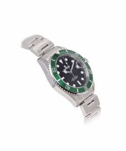 Movimento Meccanico a carica automatica NH35 Cassa Acciaio Diametro cassa 40 mm Spessore cassa 12 mm Ansa 20 mm Vetro Cristallo minerale con lente Fondo A vite Corona A vite Impermeabilità 10 atmosfere Cinturino Bracciale Oyster acciaio Quadrante Nero Ghiera Verde girevole unidirezionale Lancette Luminose Fibbia Chiusura di sicurezza